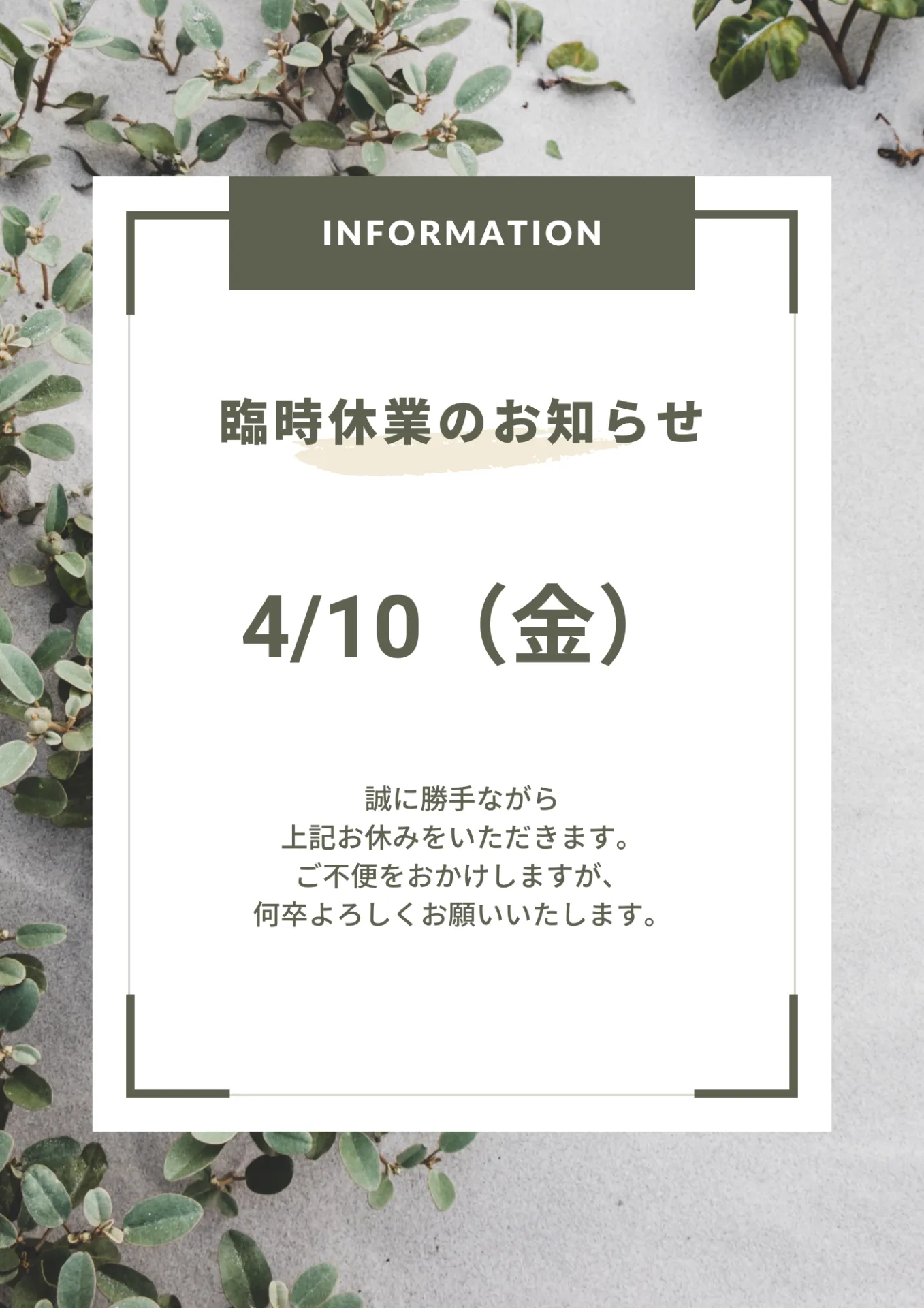 臨時休業のお知らせ
