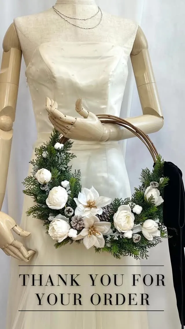 クリスマスウェディングリースブーケK様オーダーメイド#つくば花屋#造花専門店lotus#造花#オーダーメイドブーケ#ウェディングドレス#受付スペース#受付サイン#結婚式場#結婚式準備#アーティフィシャルフ…